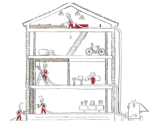 Solución rápida y sin obras que inyecta materiales aislantes en las cámaras de aire de paredes existentes. Mejora inmediata del confort térmico y reducción de consumo en calefacción y aire acondicionado.